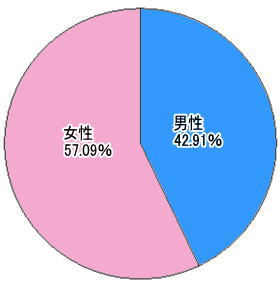 | 女性 | 57.09% ↑ |